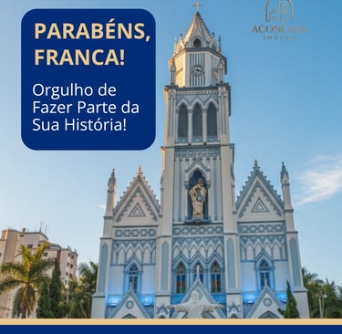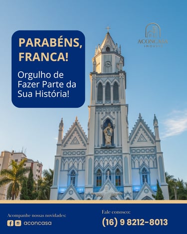 Hoje, Franca celebra mais um ano de conquistas, progresso e qualidade de vida. Uma cidade que acolhe, cresce e inspira quem vive aqui. A Aconcasa tem orgulho de fazer parte dessa história, ajudando tantas famílias a encontrarem o lar dos seus sonhos e contribuindo com o desenvolvimento do mercado imobiliário local. Neste aniversário, celebramos não apenas os avanços da cidade, mas também as pessoas que fazem Franca ser o que é: um lugar de oportunidades, prosperidade e afeto. 🎉 Parabéns, Franca! Que venham muitos anos de crescimento e realizações. Conte com a Aconcasa para continuar construindo essa história.